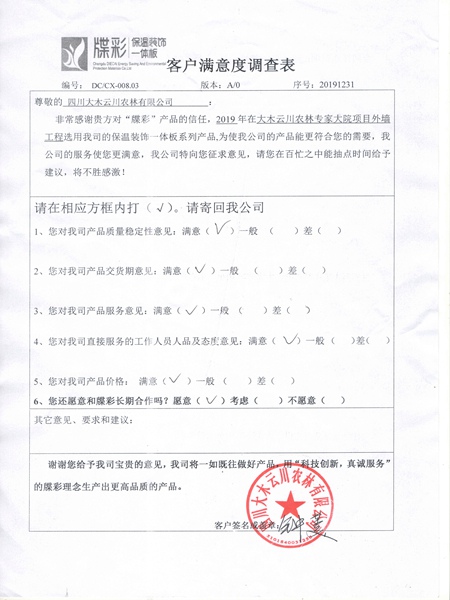 大木云川项目客户满意度调查表